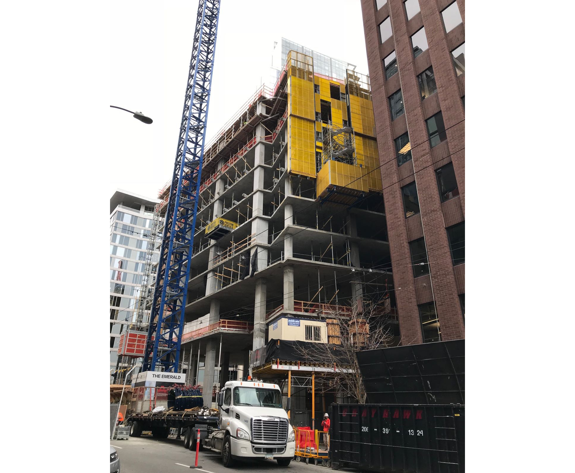 The Emerald, tòa tháp dân cư LEED 40 tầng là hiện thân của sự năng động của cuộc sống đô thị kết hợp với sự yên bình của ngôi nhà. Với thiết kế hình học lệch, tòa tháp sẽ bao gồm các không gian tiện nghi ở tầng mái và sân hiên, giúp tạo ra một tầm nhìn không giới hạn về phía Puget Sound và dãy núi Olympic.